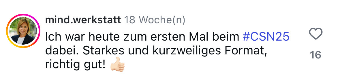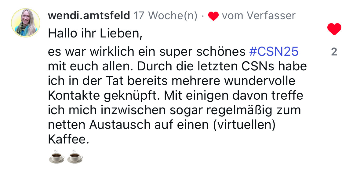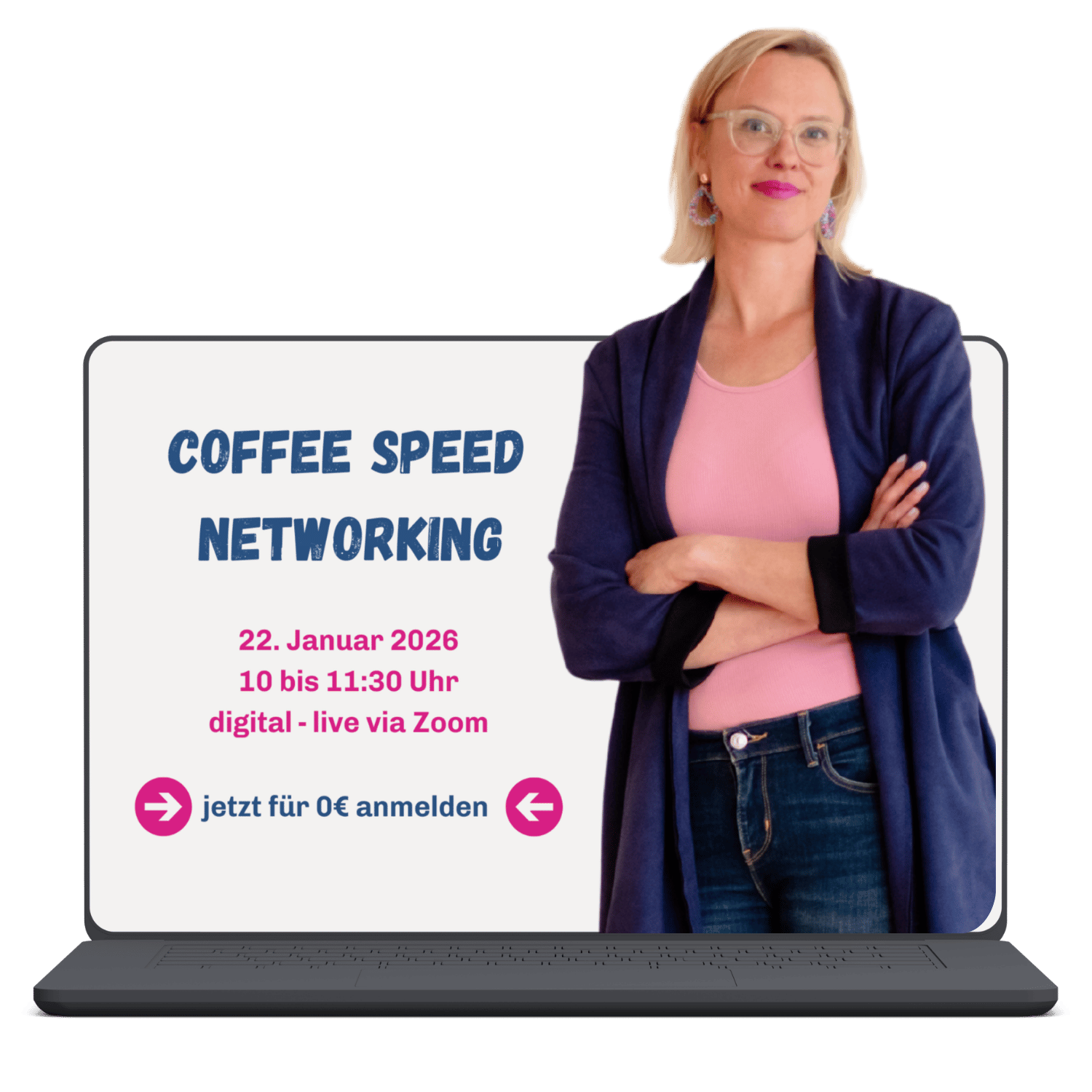 Deswegen habe ich gemeinsam mit Laura Roschewitz das Coffee Speed Networking ins Leben gerufen. Das Konzept: Kleine Austauschrunden, kurzweilige Impulse, die dich wirklich voranbringen und jede Menge Spaß & gute Laune !